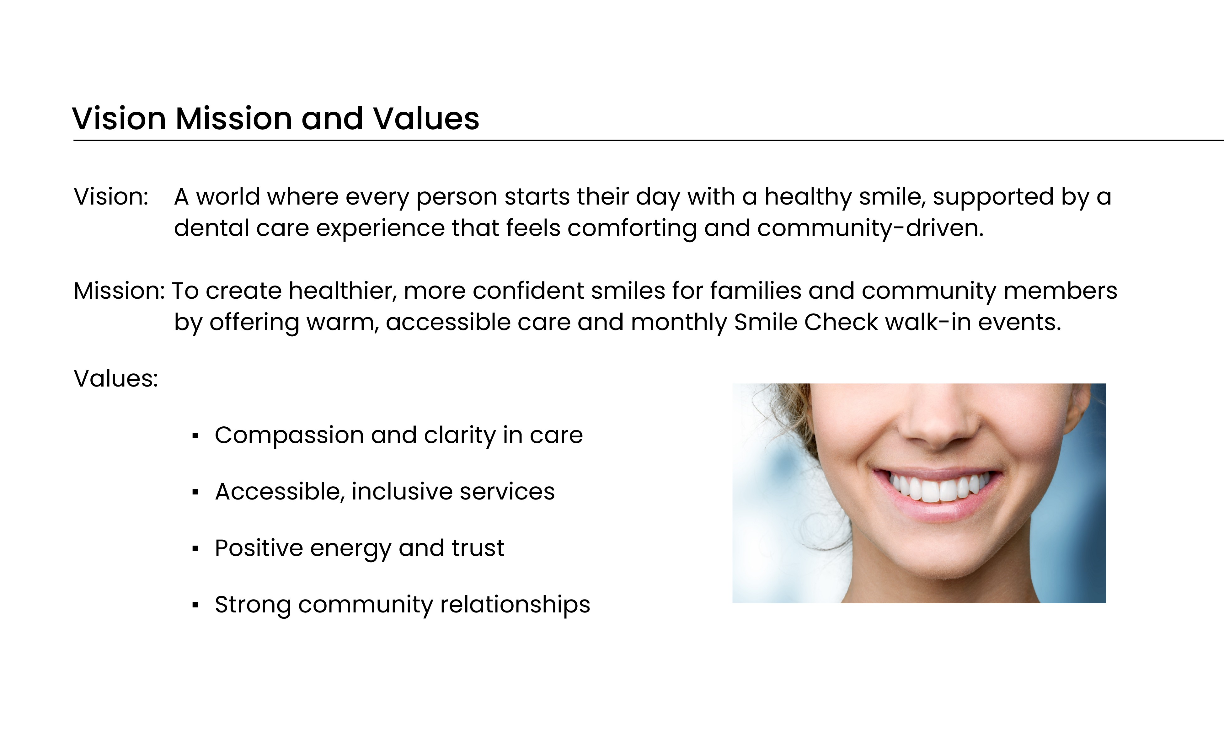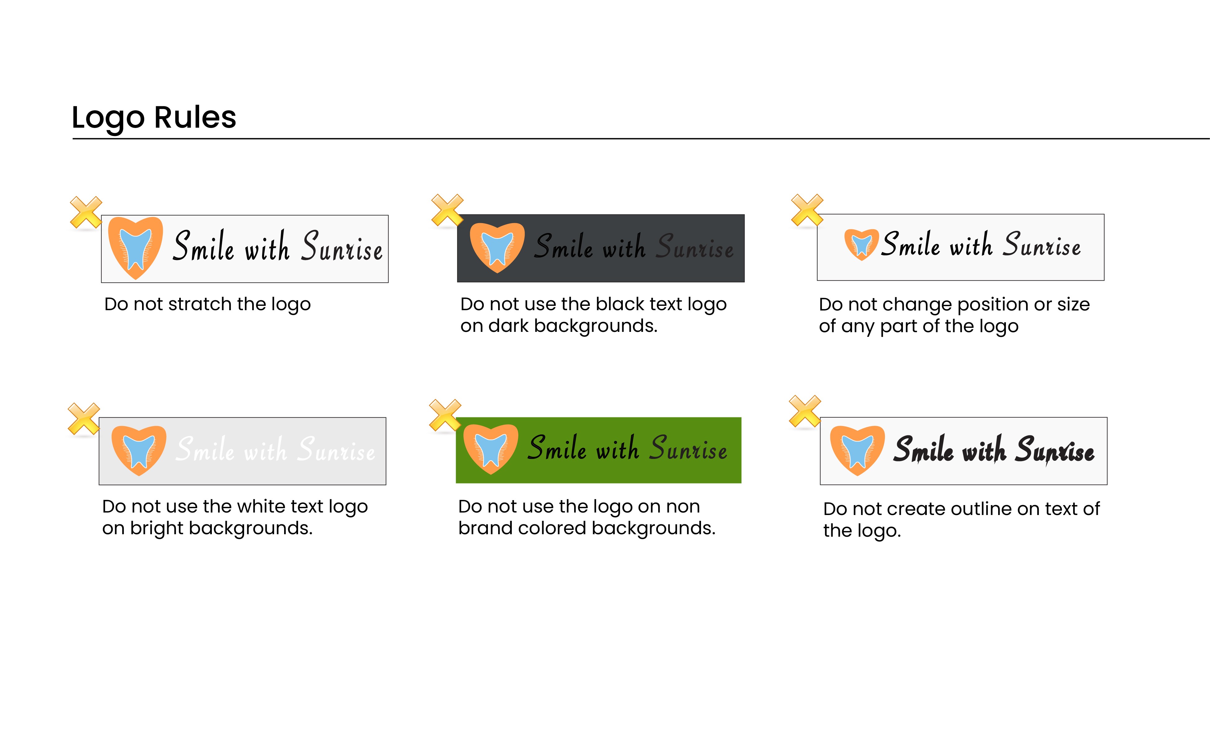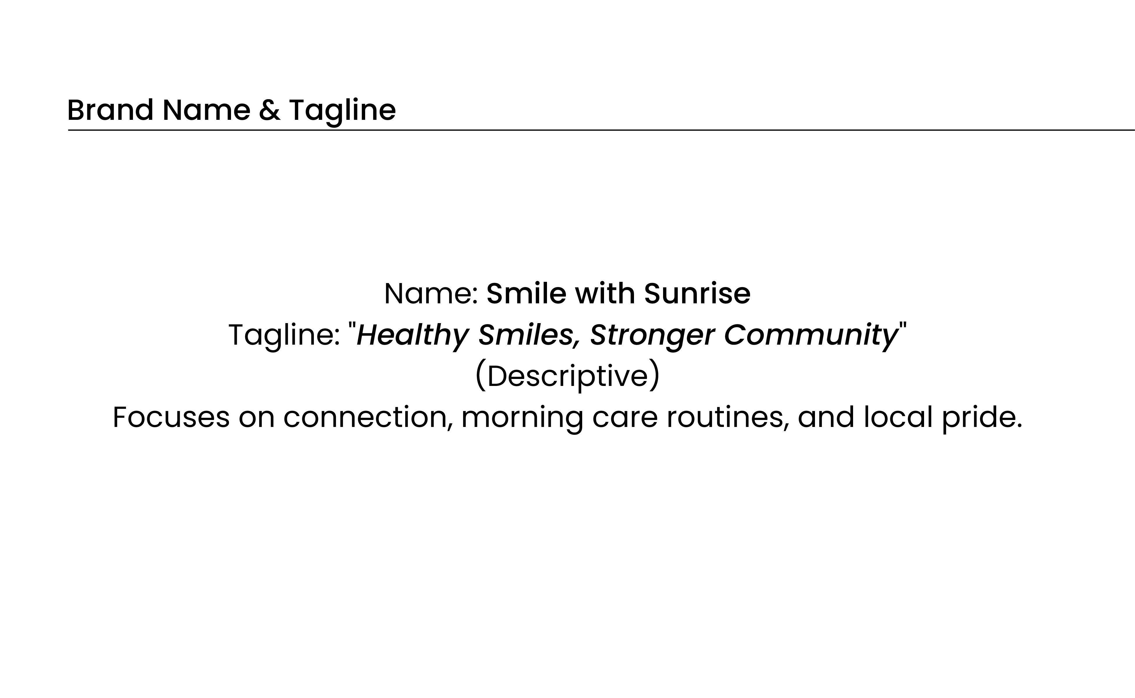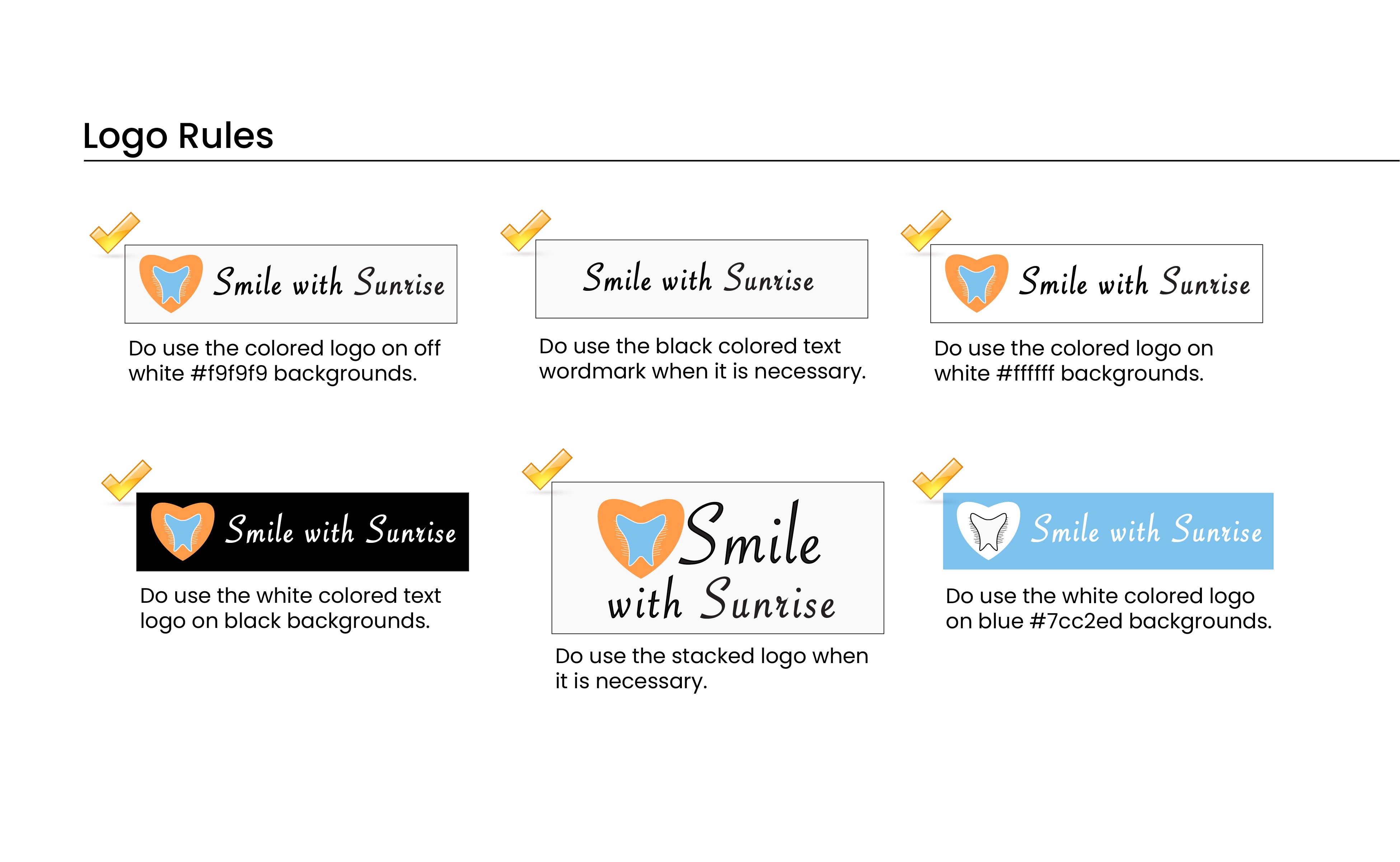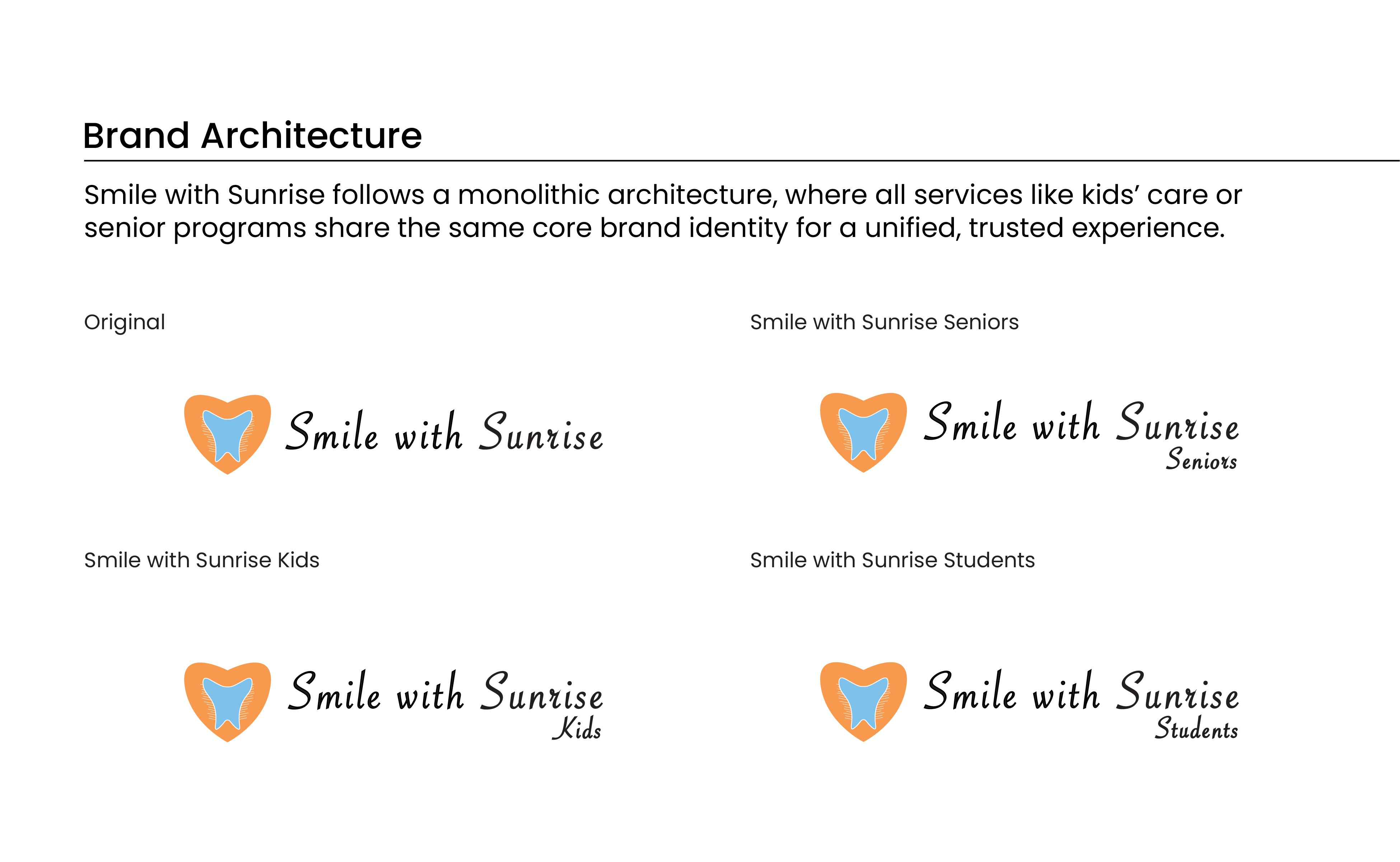 Smile with Sunrise feels warm, approachable, and community minded. The visual system creates consistency across all touchpoints and provides a clear direction for future brand applications such as signage, business cards, and digital assets.