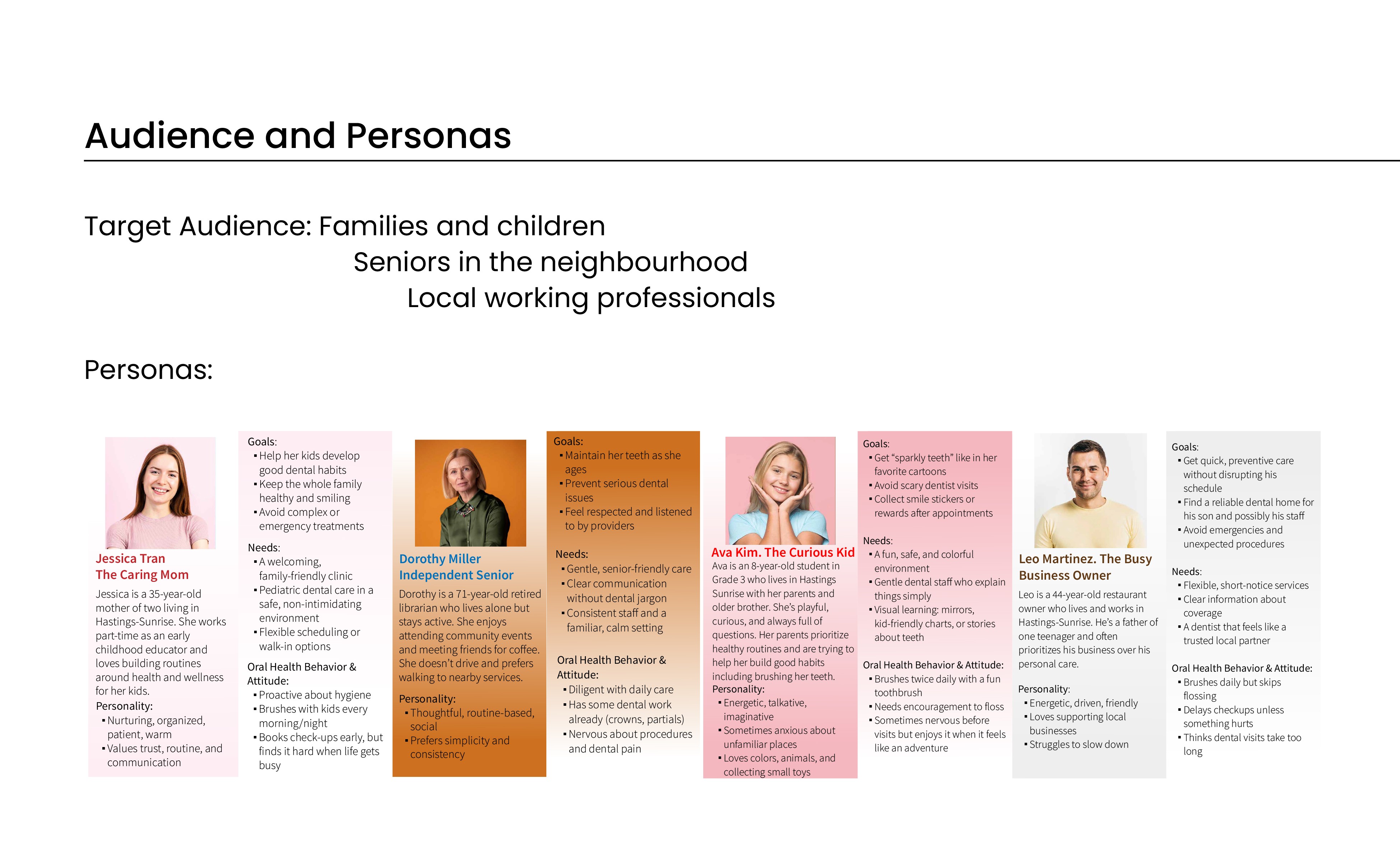 The challenge was to create a dental identity that feels friendly, warm, and community centered, while still staying professional and trustworthy. The goal was to design a brand that reduces anxiety, builds comfort, and reflects the welcoming spirit of the Hastings–Sunrise neighbourhood.