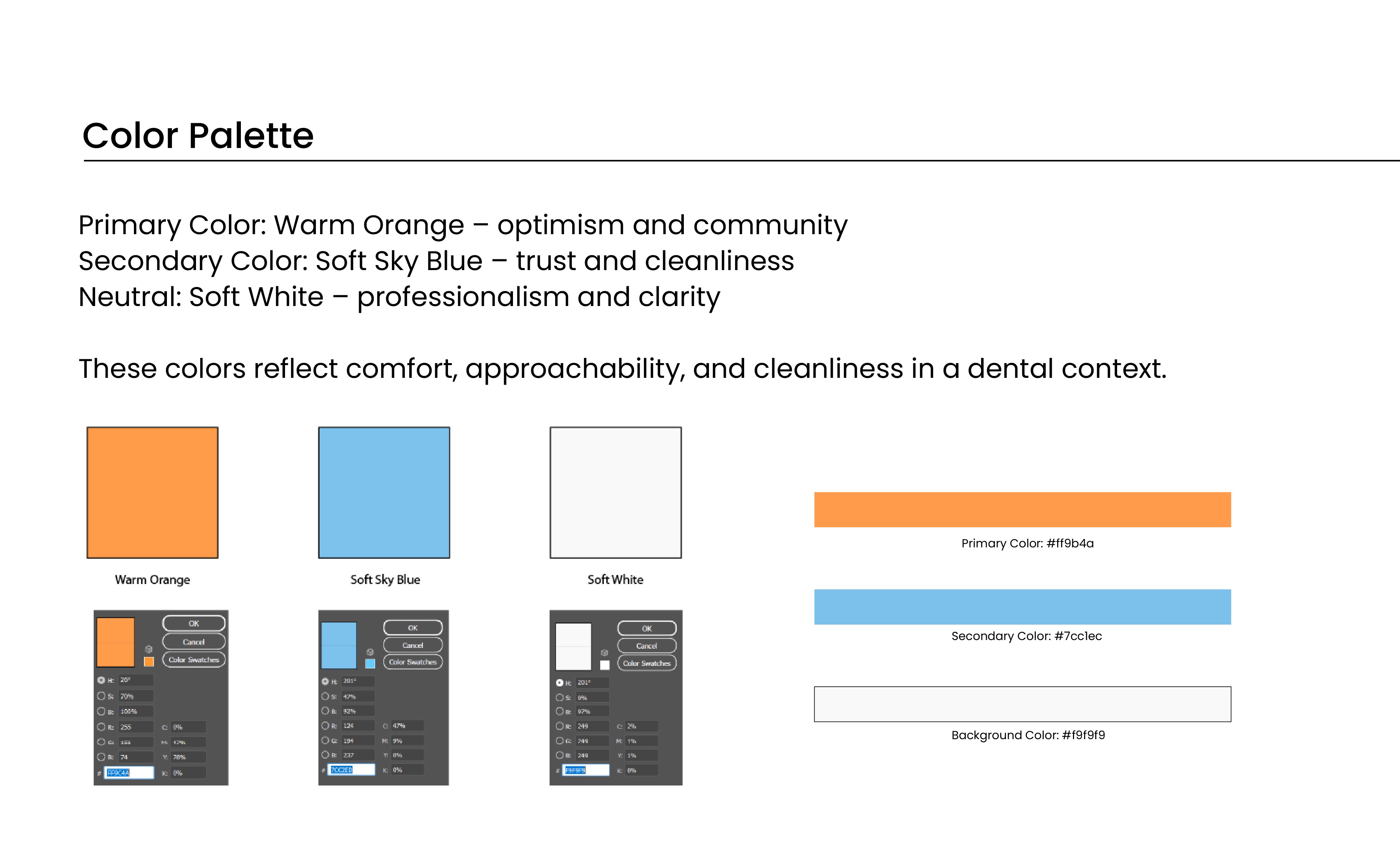 I developed a brand built around the idea of a rising sun, symbolizing positivity, renewal, and the confidence a healthy smile can bring. The visual identity combines soft colors, clean typography, and gentle shapes to represent comfort and care. A complete brand guideline was created, including logo direction, color palette, type system, tone of voice, and application examples.