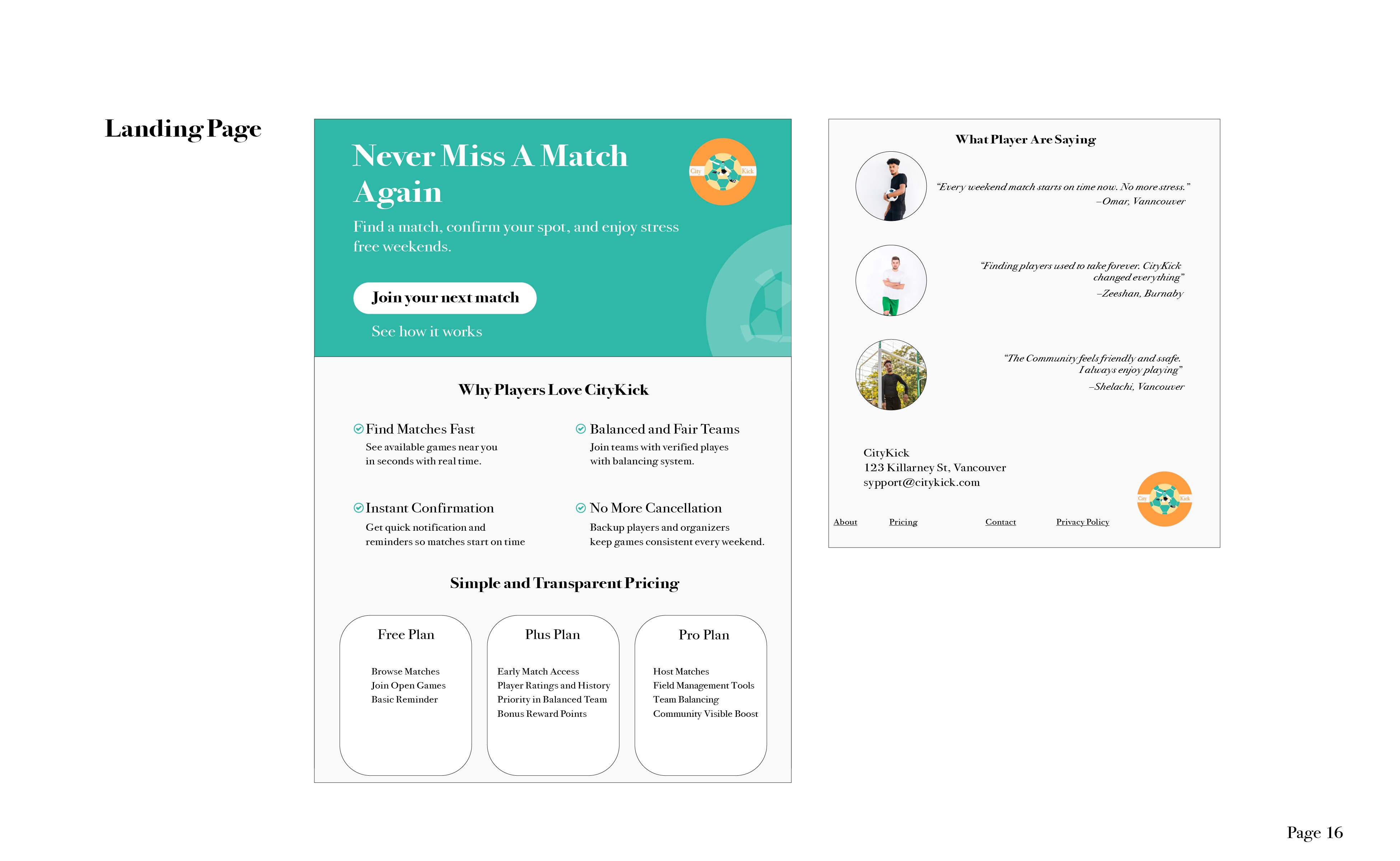 Through market research, audience insights, and brand development, I created a complete identity system that positions CityKick as a simple, energetic, and community driven solution for players who want to organize games effortlessly.