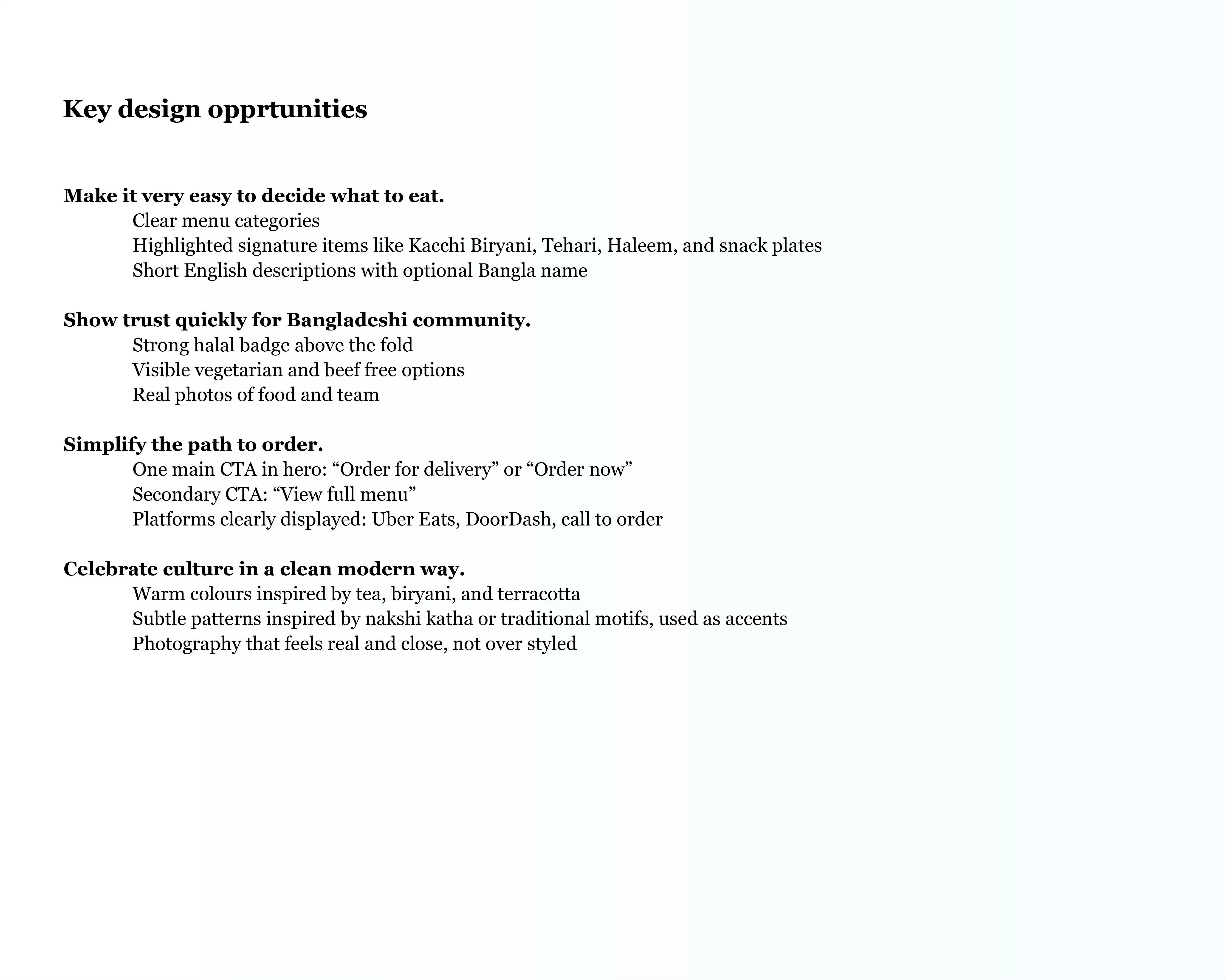 Rotiwala’s online presence did not reflect the warmth and authenticity of their food. The challenge was to design a high fidelity web experience that felt modern, easy to navigate, and trustworthy for both Bangladeshi and non Bangladeshi customers.